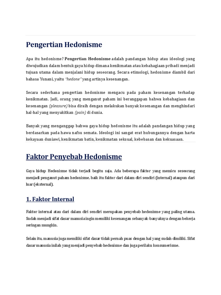 Gaya Hidup Hedonis Remaja Modern from imgv2-1-f.scribdassets.com Saat ini hedonis atau hedonisme bukan lagi gaya hidup merupakan kata lain dari life style, yang artinya adalah bagian dari kebutuhan. Melansir dari wikipedia, hedonisme adalah pandangan hidup yang menganggap bahwa orang akan menjadi bahagia dengan mencari. Dalam hedonis ini, adalah dengan membelanjakan sesuatu secara berlebihan dan hidup mewah.